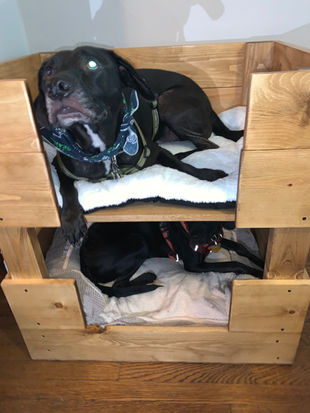 Rustic handcrafted wooden dog bunkbeds. Our doggie bunk beds are not only stylish but they also save space and motivate your pups to stay off the couch. These heavy duty wooden beds are very solid and can easily be vacuumed or cleaned. Beds can be customized to any size and color needed.
