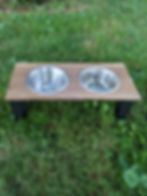 Live Edge Black Walnut Elevated Dog Water/Food Stand with cast iron legs